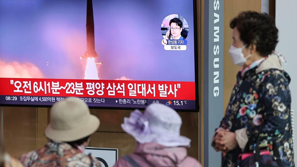 | Người dân theo dõi bản tin trên truyền hình về vụ phóng tên lửa của Triều Tiên, tại nhà ga ở Seoul, Hàn Quốc, ngày 6/10/2022. (Ảnh: Yonhap/TTXVN) |
