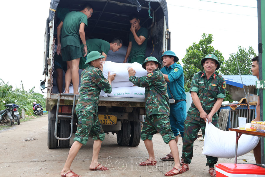 Trước diễn biến phức tạp của tình hình mưa bão, mực nước trên các sông ngày càng dâng cao khiến cho nhiều khu dân cư ngập lụt. Chạy đua với mưa lũ, Bộ CHQS tỉnh đã huy động hàng nghìn lượt cán bộ, chiến sĩ (CBCS) tham gia ứng cứu, chống tràn, di dời người, tài sản ra khỏi vùng ngập lụt, khắc phục diện tích lúa, hoa màu bị đổ, gãy ở các địa phương.