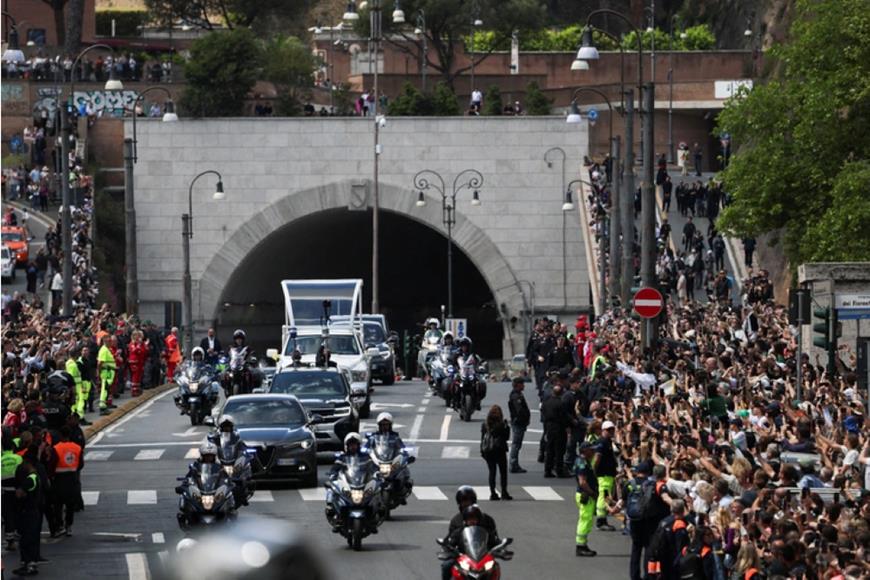 Đoàn xe chở linh cữu Giáo hoàng Francis về nơi an nghỉ ở Vương cung thánh đường Santa Maria Maggiore. Ảnh: Reuters