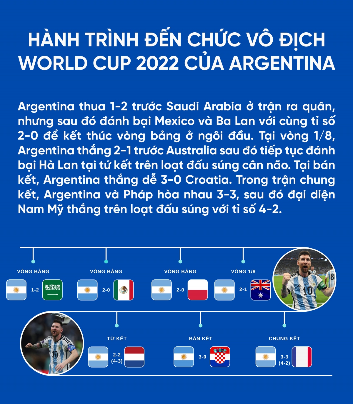 Hành trình đến chức vô địch World Cup 2022 của Messi và Argentina