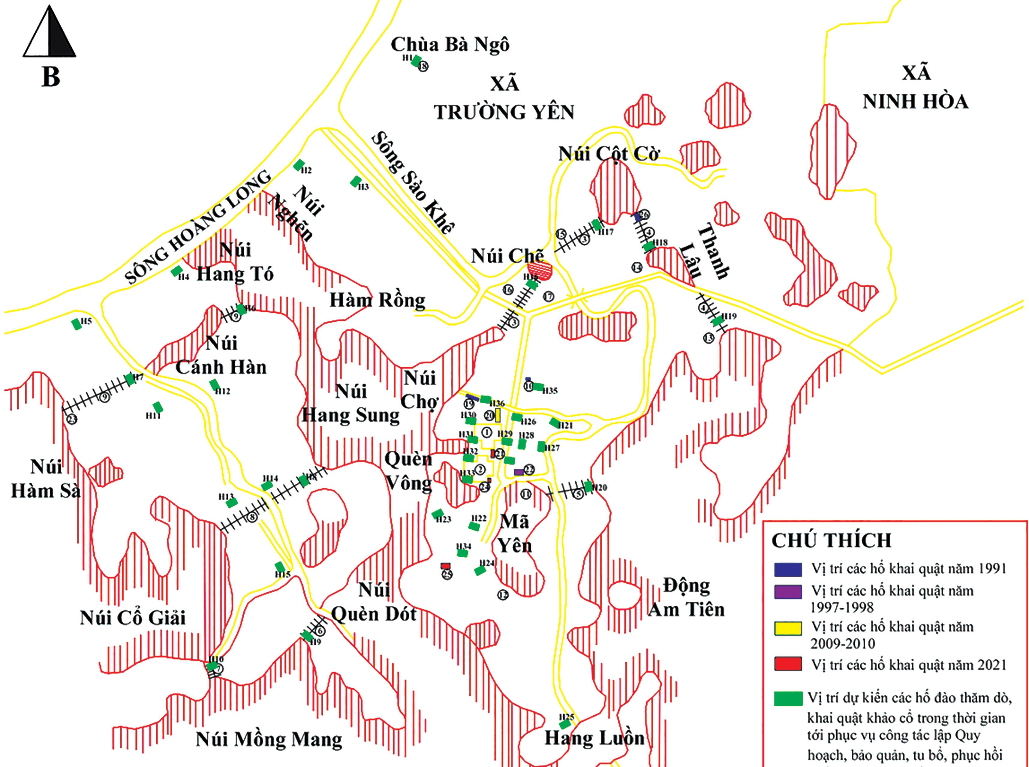 Sơ đồ các đoạn tường thành Hoa Lư thời Đinh-Tiền Lê.
