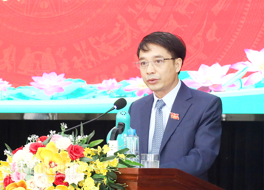 Đồng chí Hoàng Văn Kiên, Tỉnh ủy viên, Phó Chủ tịch HĐND tỉnh phát biểu tại kỳ họp. Ảnh: Lê Dũng