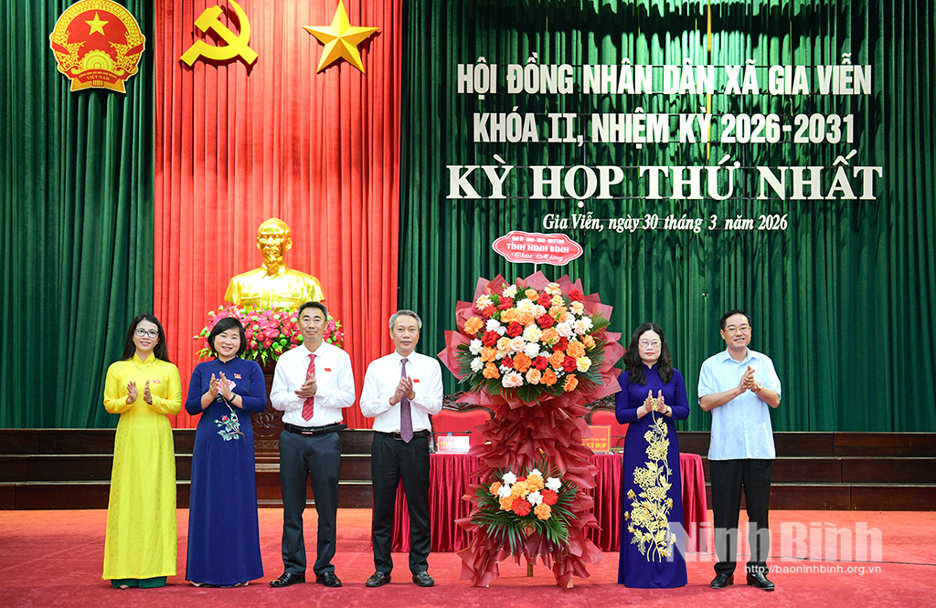 * Dự kỳ họp thứ nhất HĐND xã Gia Viễn khóa II, nhiệm kỳ 2026-2031có các đồng chí: Trần Đức Thuấn, Tỉnh ủy viên, Phó Trưởng Ban Thường trực Ban Tổ chức Tỉnh ủy; Vũ Thị Kim, Tỉnh ủy viên, Trưởng Ban Pháp chế HĐND tỉnh; Thường trực Đảng ủy xã Gia Viễn và 21 đại biểu HĐND xã.