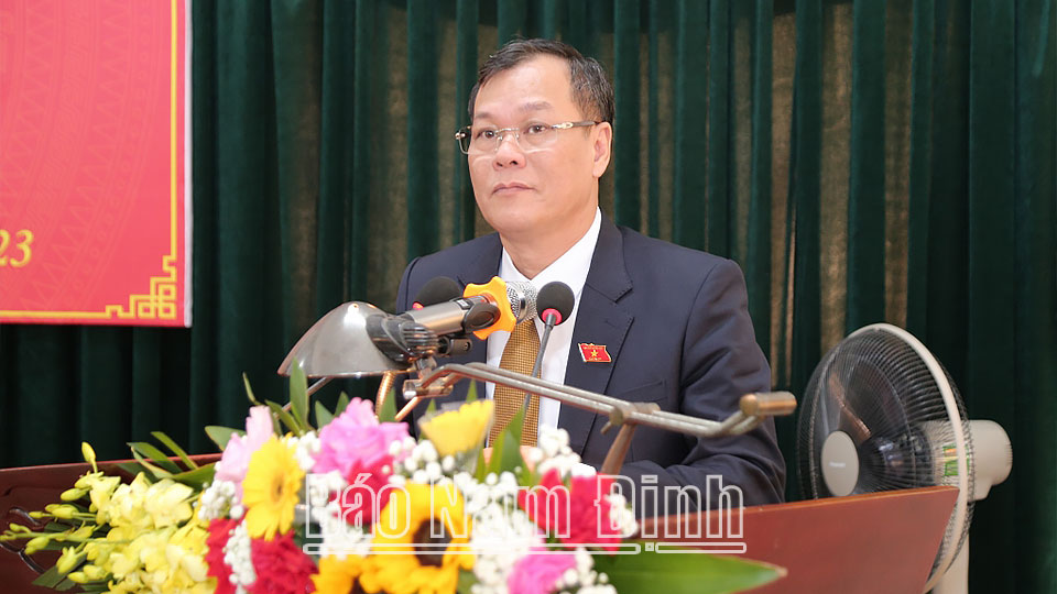 Phát biểu chỉ đạo tại kỳ họp, đồng chí Phó Bí thư Thường trực Tỉnh ủy Lê Quốc Chỉnh thông báo khái quát kết quả kỳ họp thứ mười lăm HĐND tỉnh khóa XIX, trong đó đã đánh giá toàn diện nhiệm vụ phát triển kinh tế - xã hội của tỉnh trong năm 2023, đề ra nhiều nhiệm vụ, mục tiêu mới trong năm 2024. Trong kết quả nổi bật của tỉnh, có sự đóng góp của huyện Nam Trực. Đồng chí đề nghị, ngay sau kỳ họp, huyện cần khẩn trương cụ thể hóa các nghị quyết của HĐND huyện thành các quyết định, chương trình, kế hoạch cụ thể để tổ chức thực hiện ngay từ những ngày đầu, tháng đầu của năm 2024 với tinh thần “Quyết tâm cao, nỗ lực lớn, hành động quyết liệt”. Tiếp tục đẩy mạnh phát triển kinh tế - xã hội, trong đó tập trung thu hút các dự án đầu tư lớn, công nghệ cao vào các khu, cụm công nghiệp trên địa bàn. Tập trung hơn nữa công tác xây dựng NTM nâng cao, kiểu mẫu; phấn đấu hết năm 2024 có 100% xã, thị trấn đạt chuẩn NTM nâng cao, có ít nhất 3 xã đạt chuẩn NTM kiểu mẫu, năm 2025 huyện đạt chuẩn NTM nâng cao. Đẩy mạnh công tác cải cách hành chính, xây dựng chính quyền điện tử, đô thị thông minh và chuyển đổi số. Tập trung đẩy nhanh tiến độ các dự án, công trình, nhất là các dự án xây dựng cơ sở hạ tầng giao thông liên kết vùng, các khu, cụm công nghiệp trên địa bàn. Huy động sự vào cuộc của cả hệ thống chính trị, tập trung triển khai các bước sắp xếp đơn vị hành chính cấp xã theo phương án và đề án được cấp có thẩm quyền phê duyệt. Tiếp tục đẩy mạnh công tác xây dựng, chỉnh đốn Đảng, xây dựng hệ thống chính trị trong sạch, vững mạnh, hoạt động hiệu lực, hiệu quả./.