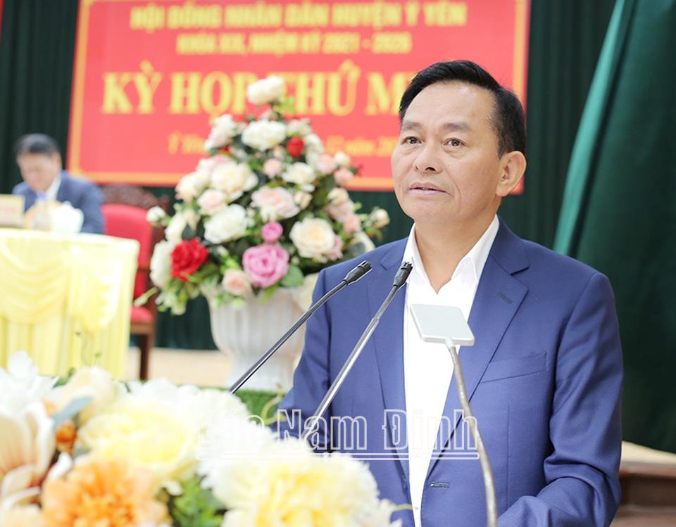 Phát biểu tại kỳ họp, đồng chí Nguyễn Phùng Hoan, Phó Chủ tịch Thường trực HĐND tỉnh đánh giá cao và biểu dương những kết quả mà các cấp ủy Đảng, chính quyền, cộng đồng doanh nghiệp và nhân dân huyện Ý Yên đã đạt được trong năm qua. Đồng thời nhấn mạnh, năm 2024 là năm có ý nghĩa rất quan trọng với nhiều thời cơ thuận lợi để bứt phá, hoàn thành các chỉ tiêu, kế hoạch phát triển kinh tế - xã hội giai đoạn 2021-2025, huyện cần nỗ lực, quyết tâm cao để thực hiện thắng lợi các mục tiêu nhiệm vụ đã đề ra. Trong đó HĐND huyện xây dựng nghị quyết, chương trình kế hoạch giám sát hiệu quả việc thực hiện các chỉ tiêu, nhiệm vụ phát triển kinh tế - xã hội năm 2024. UBND huyện chỉ đạo xây dựng chương trình kế hoạch cụ thể việc triển khai thực hiện hiệu quả các nghị quyết được HĐND huyện thông qua. Đồng chí mong rằng các cấp ngành, công chức, viên chức, người lao động, cộng đồng doanh nghiệp, cử tri và nhân dân huyện Ý Yên tiếp tục phát huy truyền thống đoàn kết, quyết tâm thi đua lập thành tích cao nhất, hoàn thành xuất sắc nhiệm vụ được giao, góp phần xây dựng Đảng, hệ thống chính trị trong sạch vững mạnh, đảm bảo quốc phòng - an ninh, thực hiện thắng lợi Nghị quyết Đại hội Đảng các cấp./.