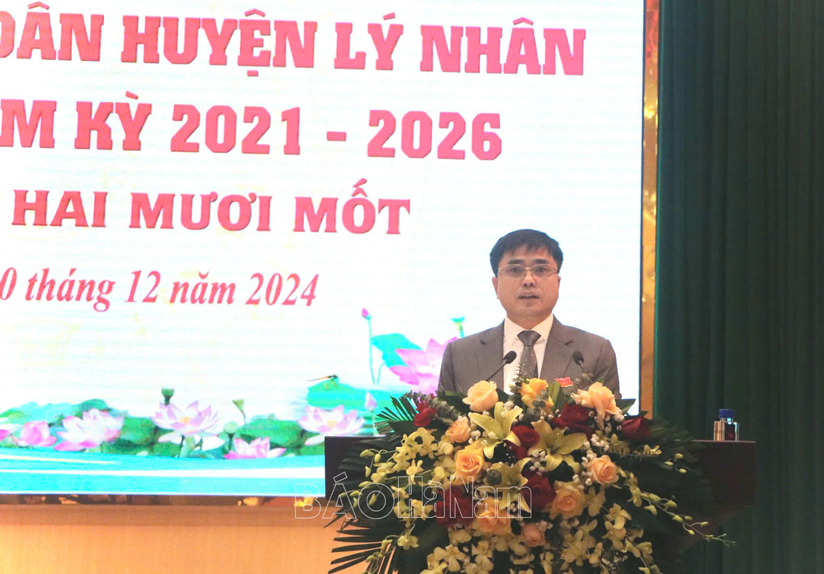 Phát biểu tại kỳ họp, đồng chí Bùi Văn Hoàng, TUV, Bí thư Huyện ủy Lý Nhân nhấn mạnh một số nội dung cần quan tâm thực hiện để hoàn thành tốt nhiệm vụ năm 2025. Trong đó, tập trung lãnh đạo, chỉ đạo quyết liệt, thực hiện đồng bộ các giải pháp trong điều hành phát triển KT-XH. Tiếp tục quan vật chất, tinh thần của nhân dân, nhất là các đối tượng chính sách, đối tượng bảo trợ xã hội, bảo đảm an sinh xã hội. Tập trung các nguồn lực để triển khai vận động hỗ trợ xóa nhà tạm, nhà dột nát cho hộ nghèo, hộ cận nghèo và gia đình người có công trên địa bàn huyện; giải quyết tốt các vấn đề xã hội như: nước sạch, vệ sinh môi trường, vệ sinh an toàn thực phẩm... Chỉ đạo nâng cao chất lượng công tác nắm tình hình, giữ vững an ninh chính trị, trật tự an toàn xã hội. Nâng cao hiệu lực, hiệu quả quản lý nhà nước trên các lĩnh vực, nhất là về quản lý đất đai, quản lý tài chính - ngân sách, quản lý quy hoạch, quản lý môi trường, quản lý các hoạt động tôn giáo…