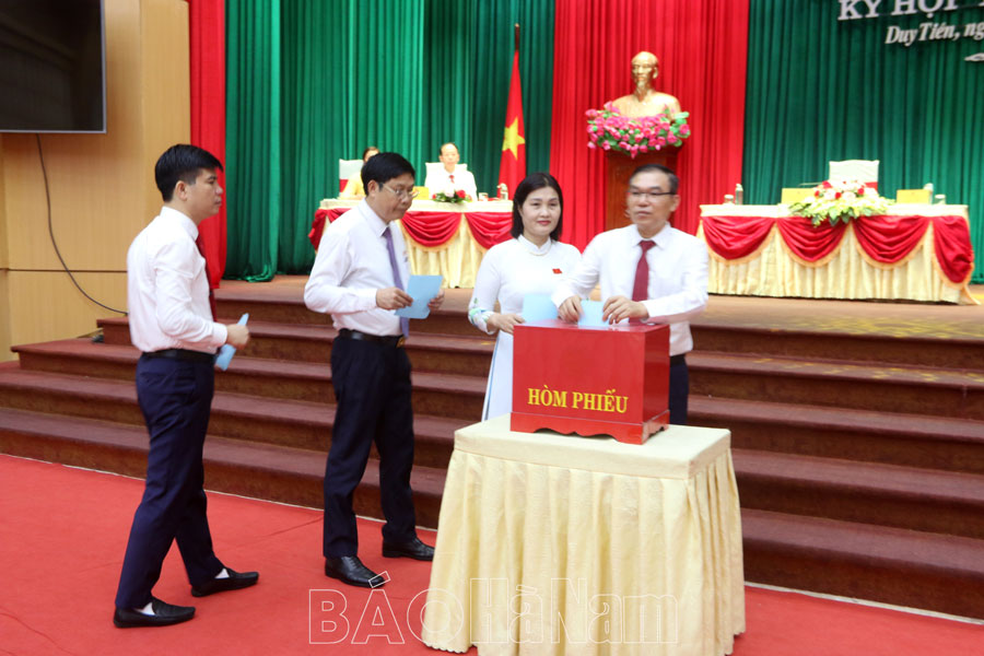 Ngay trong phiên khai mạc, kỳ họp cũng đã tiến hành quy trình bầu kiện toàn chức danh Chủ tịch HĐND thị xã Duy Tiên nhiệm kỳ 2021 – 2026; bầu bổ sung Ủy viên UBND thị xã. Đồng chí Trịnh Thị Hằng, Phó Bí thư Thường trực Thị ủy, đại biểu HĐND thị xã khóa XX, nhiệm kỳ 2021 – 2026 được bầu giữ chức Chủ tịch HĐND thị xã Duy Tiên khóa XX, nhiệm kỳ 2021 - 2026./.