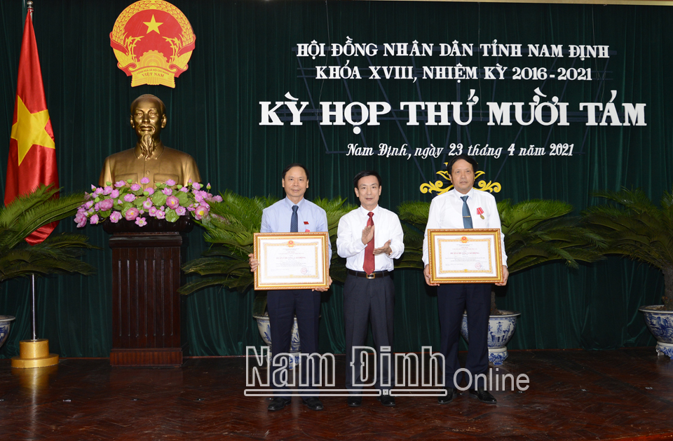 Tại kỳ họp, đồng chí Phạm Đình Nghị, Phó Bí thư Tỉnh ủy, Chủ tịch UBND tỉnh đã trao Huân chương Lao động hạng Nhì cho đồng chí Nguyễn Viết Hưng, nguyên Phó Chủ tịch Thường trực HĐND tỉnh; trao Huân chương Lao động hạng Ba cho đồng chí Ngô Gia Tự, Nguyên Phó Chủ tịch Thường trực UBND tỉnh; trao Bằng khen của UBND tỉnh 11 tập thể, 16 cá nhân.