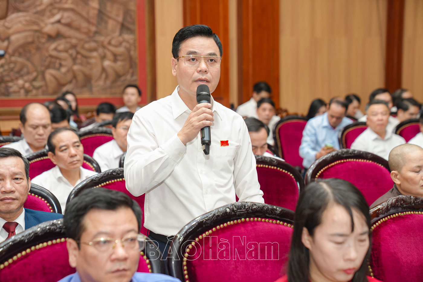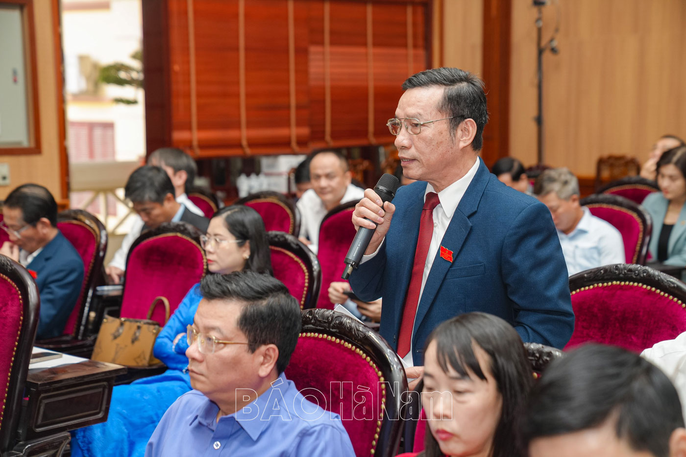 Các vấn đề được kiến nghị và chất vấn chủ yếu tập trung vào: việc thanh tra, kiểm tra các đại lý buôn bán vật tư nông nghiệp trên toàn tỉnh để tránh tình trạng thuốc trừ sâu và cây con giống không bảo đảm chất lượng, ảnh hưởng đến hiệu quả sản xuất nông nghiệp; điều chỉnh cơ chế hỗ trợ thuốc diệt chuột cho các HTXDVNN để phòng trừ chuột bảo đảm đồng bộ, hiệu quả (cơ chế theo Nghị quyết 03/2022/NQ-HĐND của HĐND tỉnh là hỗ trợ trực tiếp cho người nông dân); cơ chế chính sách, hỗ trợ diện tích lúa, hoa màu, cây vụ đông bị thiệt hại do ảnh hưởng mưa lớn và cơn bão số 3 gây ra để người dân có điều kiện tái sản xuất; đầu tư nâng cấp, cải tạo chống tràn các tuyến đê, bối khu dân cư ngoài đê sông Hồng, sông Châu Giang, sông Duy Tiên, sông Nhuệ; khảo sát nâng cấp trạm bơm Chi Tây sông Nhuệ, tại địa điểm nằm trên đầu kênh A34 chảy ra sông Nhuệ (trạm bơm do UBND, HTXDVNN xã đầu tư xây dựng từ năm 1982, đến nay bị xuống cấp, không đáp ứng việc bơm nước thải từ Cụm Công nghiệp Kim Bình và phục vụ sản xuất nông nghiệp cho nhân dân); đầu tư khơi thông nạo vét và sửa chữa các tuyến kênh: S18, S16; TH2; Đ21; Đ12 đã bị sạt lở, bồi lắng gây khó khăn công tác tưới tiêu, phòng chống lụt bão; đề nghị có chủ trương hỗ trợ kinh phí nâng cấp, cải tạo hệ thống thủy lợi nội đồng của 2 thôn Trung Hiếu Thượng và thôn Trung Hiếu Hạ do ảnh hưởng bởi cơn bão số 3 vừa qua, gây thiệt hại nhiều về tài sản, vật nuôi, cây trồng của người dân…