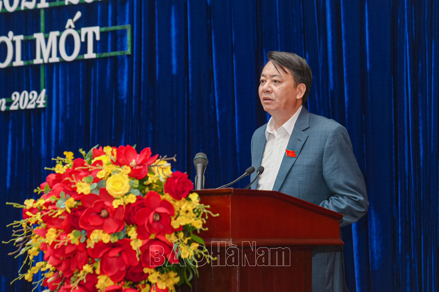 Người đứng đầu các sở, ngành: Y tế, Nội vụ; Lao động, Thương binh và Xã hội, Xây dựng; Ban Quản lý các KCN tỉnh trả lời ý kiến cử tri và chất vấn đại biểu HĐND tỉnh về: các giải pháp tháo gỡ những khó khăn giúp cho các trung tâm y tế nâng cao chất lượng khám, chữa bệnh cho nhân dân; cơ chế hỗ trợ phụ cấp cho chức danh phó chủ tịch hội người cao tuổi cấp xã; xem xét, hỗ trợ mức kinh phí và sắp xếp bố trí việc làm phù hợp cho cán bộ, công chức, cán bộ bán chuyên nghỉ công tác khi thực hiện sáp nhập đơn vị hành chính; hỗ trợ các đối tượng là cán bộ bán chuyên trách cấp xã, cấp thôn có thời gian công tác 30, 40 năm nhưng khi nghỉ công tác không có chế độ; xem xét công nhận Hội truyền thống Bộ đội Trường Sơn là hội đặc thù; xem xét khen thưởng cho các hộ có công nuôi K8 và thành tích tham gia chống Mỹ; chi trả trợ cấp cho các đối tượng người có công, bảo trợ xã hội hằng tháng cho thuận tiện vì các đối tượng tuổi cao, sức khỏe yếu đi lại khó khăn trong việc rút tiền, một số đối tượng chưa lấy được thẻ hoặc đã mở tài khoản nhưng chưa nhận được tiền; một số đối tượng mở tài khoản phải làm đi làm lại nhiều lần gây bức xúc trong nhân dân; xem xét hỗ trợ bảo hiểm y tế đối với chi hội phó các đoàn thể để động viên đối tượng này hoạt động hiệu quả hơn sau khi sáp nhập xóm thành thôn, địa bàn thôn rộng; đề nghị sớm triển khai đầu tư xây dựng KCN phía Đông Nam xã Liêm Túc theo quy hoạch đã được duyệt...