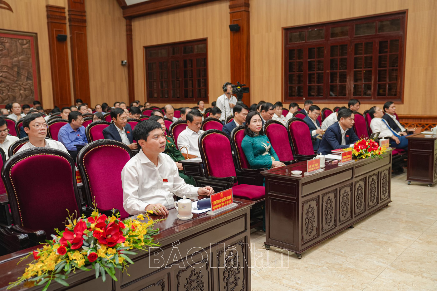 Chiều 5/12, Kỳ họp thứ 21, HĐND tỉnh khóa XIX, nhiệm kỳ 2021-2026 tiếp tục chương trình làm việc. Dự phiên họp có các đồng chí: Lê Thị Thủy, Ủy viên Trung ương Đảng, Bí thư Tỉnh ủy, Chủ tịch HĐND tỉnh; Đinh Thị Lụa, Phó Bí thư Thường trực Tỉnh ủy; Trương Quốc Huy, Phó Bí thư Tỉnh ủy, Chủ tịch UBND tỉnh, Trưởng Đoàn ĐBQH tỉnh; các đồng chí Ủy viên Ban Thường vụ Tỉnh ủy; Thường trực HĐND, lãnh đạo UBND tỉnh; Ủy viên Ban Chấp hành Đảng bộ tỉnh; Thường trực Ủy ban MTTQ tỉnh; lãnh đạo các sở, ban, ngành, đoàn thể tỉnh; các huyện, thị xã, thành phố cùng các vị đại biểu HĐND tỉnh khóa XIX.