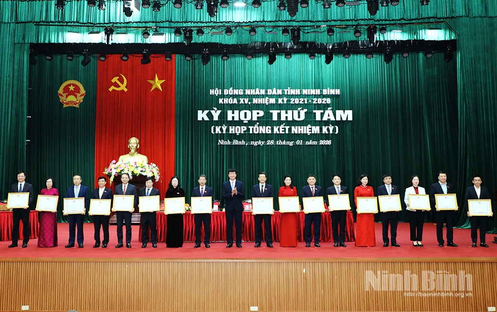 Nhân dịp tổng kết nhiệm kỳ HĐND tỉnh Ninh Bình khóa XV, nhiệm kỳ 2021-2026, đồng chí Chủ tịch UBND tỉnh đã quyết định tặng Bằng khen cho 19 tập thể, 87 cá nhân đã có thành tích xuất sắc đóng góp vào hoạt động của HĐND tỉnh.