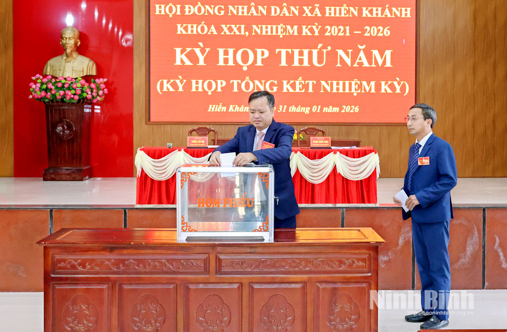 Tại kỳ họp, HĐND xã Hiển Khánh đã ban hành 5 nghị quyết liên quan đến công tác nhân sự; kế hoạch đầu tư công; giao số lượng viên chức làm việc hưởng ngân sách, số lượng người hoạt động không chuyên trách trên địa bàn và một số nhiệm vụ khác thuộc thẩm quyền.