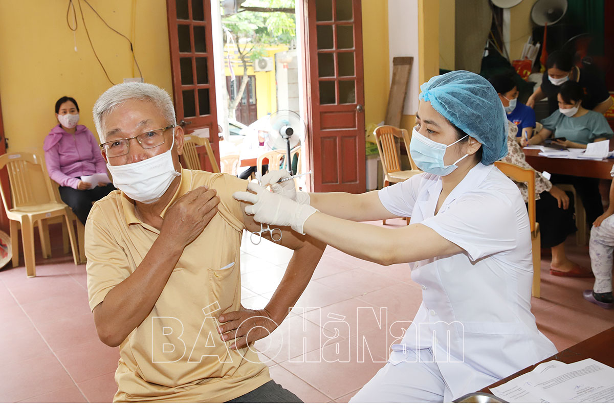 Tiêm vắc xin phòng Covid-19 mũi 4 cho người dân phường Hai Bà Trưng, TP Phủ Lý
