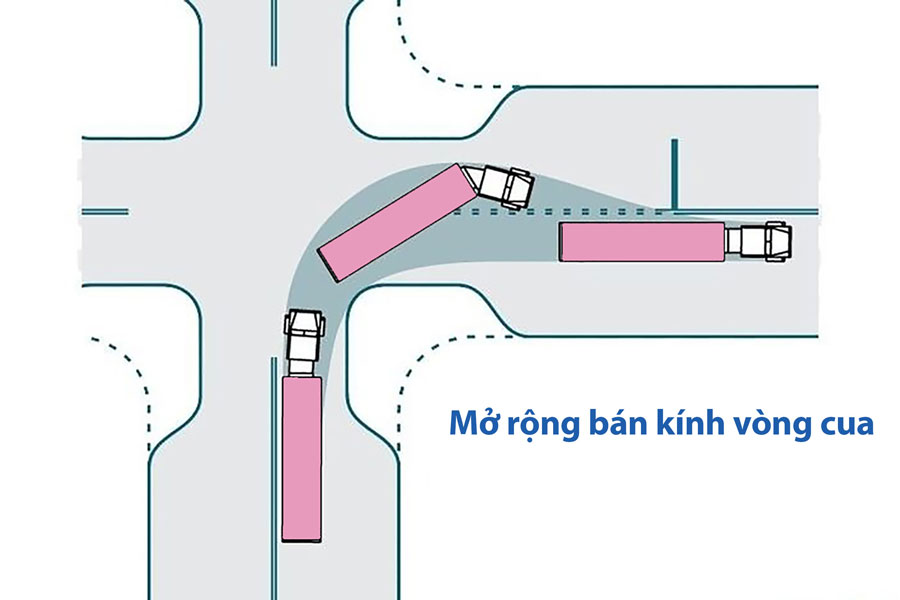 Với các xe có chiều dài lớn, khi rẽ luôn phải mở rộng vòng cua. Ảnh minh hoạ