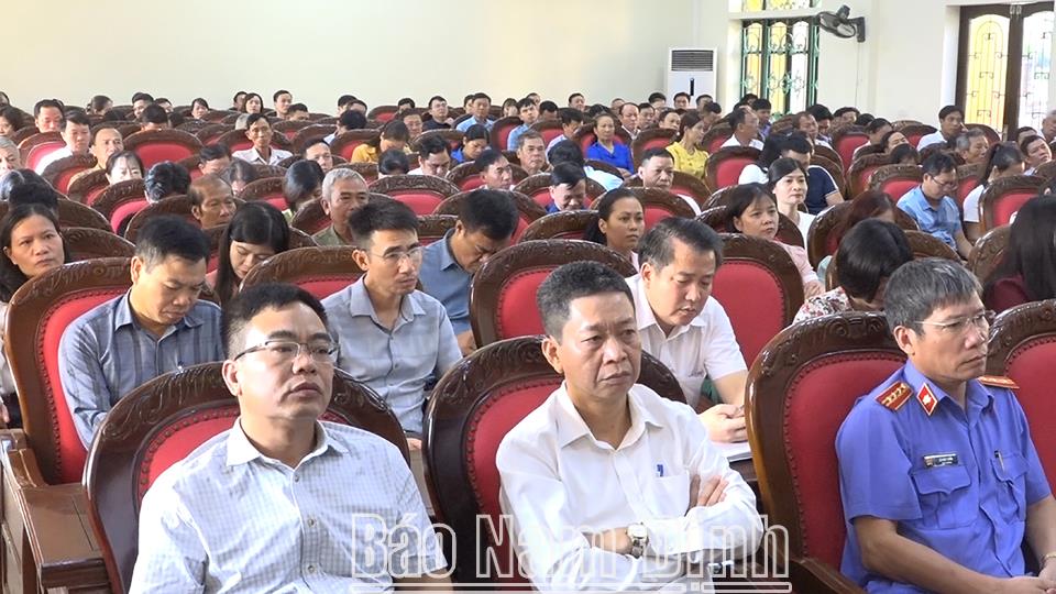 | Nhân dân tham gia hội nghị đối thoại giữa người đứng đầu cấp ủy, chính quyền với Mặt trận Tổ quốc, các tổ chức chính trị xã hội và nhân dân huyện Mỹ Lộc được tổ chức tháng 10-2023. |