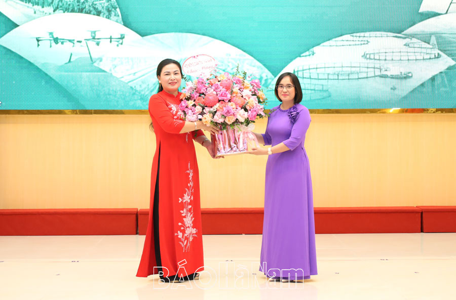 Lãnh đạo huyện Lý Nhân tặng hoa chúc mừng Ban Tổ chức hội thi.