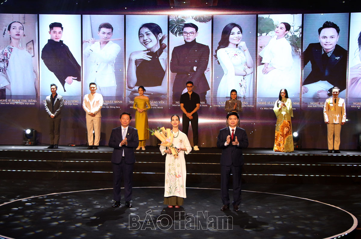 Diễn viên múa Thu Hằng, Nhà hát vũ kịch Việt Nam trước khi lên bục vinh danh nghệ sỹ, nhận Cup và hoa tại chương trình nhờ những thành tích xuất sắc trong Liên hoan ca múa nhạc toàn quốc năm 2021, đợt 2 với vai diễn Mỵ Châu trong vở Ballet “Hàm Lệ Minh Châu”, chị đã cùng Văn Nam và các nghệ sỹ nhà hát thể hiện trích đoạn vở “Hồ Thiên Nga” bằng tất cả tình yêu nghệ thuật, sự cống hiến của nghệ sỹ.