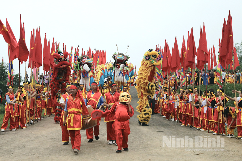 The water procession is one of the important rituals of the traditional Hoa Lu Festival.