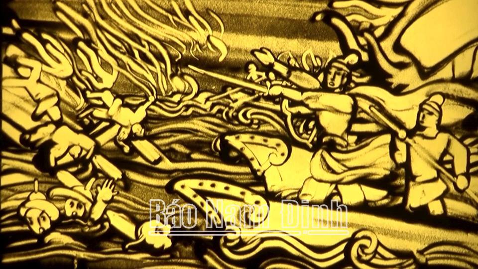 | Hình ảnh Trận chiến Bạch Đằng được thể hiện bằng nghệ thuật tranh cát động của Họa sĩ Nguyễn Thế Nhân. Ảnh: Nhân vật cung cấp |