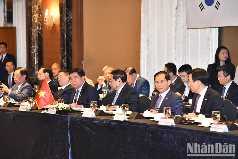 Phát biểu ý kiến mở đầu cuộc Toạ đàm, Thủ tướng Phạm Minh Chính đánh giá, quan hệ Việt Nam-Hàn Quốc chưa bao giờ tốt đẹp như hiện nay, trong đó, quan hệ kinh tế, thương mại và đầu tư phát triển mạnh mẽ. Hiện có khoảng 300 nghìn người Việt Nam đang sinh sống, làm việc, học tập tại Hàn Quốc. Quan hệ hai nước phong phú, đa dạng.