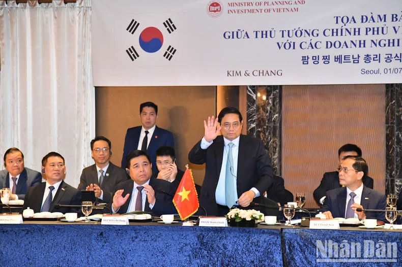 | Thủ tướng Phạm Minh Chính tham dự tọa đàm với các tập đoàn, doanh nghiệp lớn của Hàn Quốc. |
