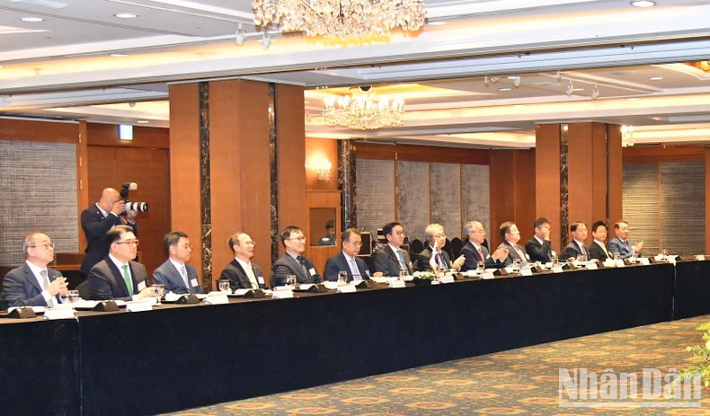 | Lãnh đạo các tập đoàn, doanh nghiệp lớn của Hàn Quốc tham dự tọa đàm với Thủ tướng Phạm Minh Chính. |