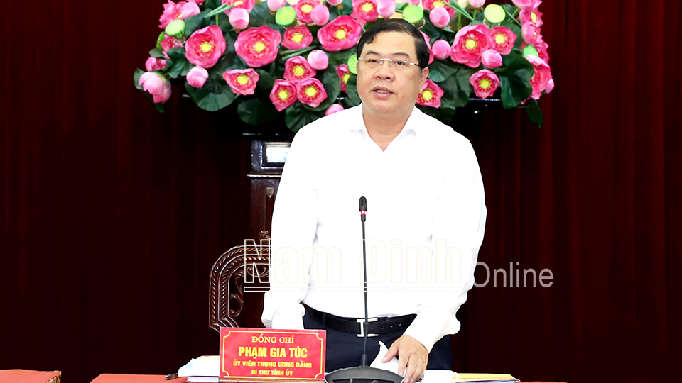 | Đồng chí Phạm Gia Túc, Ủy viên BCH Trung ương Đảng, Bí thư Tỉnh ủy phát biểu khai mạc hội nghị. |