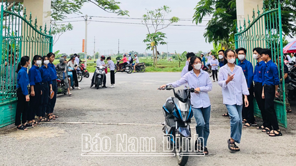 | Thí sinh thi vào THPT Trần Văn Lan (Mỹ Lộc) ra về sau khi làm xong bài thi Ngoại ngữ. |