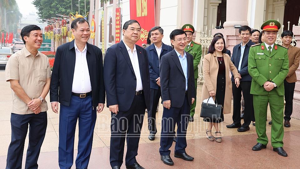 | Các đồng chí Thường trực Tỉnh ủy kiểm tra thực tế công tác chuẩn bị Hội nghị công bố quy hoạch và xúc tiến đầu tư tỉnh Nam Định tại Nhà Văn hóa 3-2 tỉnh. |