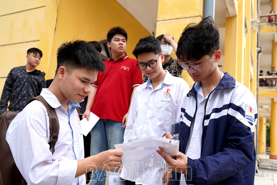 Ngày 27/6, các thí sinh Hà Nam đã bước vào ngày thi thứ hai, ngày thi cuối cùng Kỳ thi tốt nghiệp THPT năm 2025. Buổi sáng, gần 10.200 thí sinh dự thi theo Chương trình GDPT 2018 làm bài thi tự chọn, mỗi thí sinh thi 2 môn (trong số các môn: Ngoại ngữ, Lịch sử, Địa lý, Giáo dục Kinh tế và Pháp luật, Lịch sử, Hóa học, Sinh học, Vật lý, Tin học).