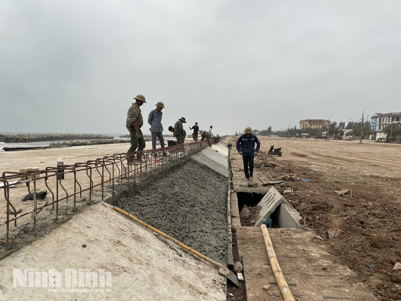 Rời vùng trũng Gia Tường, chúng tôi có mặt tại tuyến đê biển Hải Hậu, nơi đang triển khai Dự án thành phần số 2 thuộc Dự án Củng cố, hoàn thiện đê biển một số tỉnh Bắc Bộ. Với tổng mức đầu tư 500 tỷ đồng từ ngân sách Trung ương, đây là công trình trọng điểm nhằm bảo vệ tính mạng và sinh kế của nhân dân trước sức tàn phá của bão và triều cường.