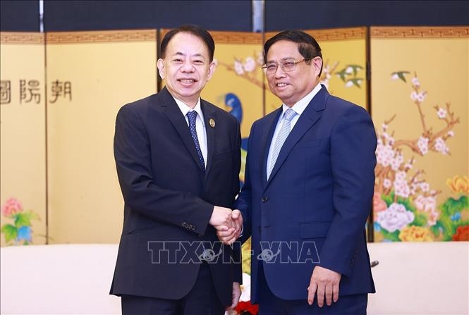 Hai bên đánh giá cao những tiến triển đáng khích lệ quan trọng của quan hệ hợp tác sâu rộng, hiệu quả giữa Việt Nam và Quảng Tây thời gian qua. Kỳ vọng quan hệ hợp tác tương xứng hơn nữa với tiềm năng, mức độ quan hệ, Thủ tướng Phạm Minh Chính mong muốn hai bên tiếp tục tập trung triển khai hiệu quả, cụ thể hóa nhận thức chung cấp cao; phối hợp tổ chức các hoạt động trong Năm giao lưu nhân văn Việt Nam-Trung Quốc 2025. Thủ tướng đề nghị hai bên hợp tác trong triển khai các tuyến đường sắt khổ tiêu chuẩn kết nối Quảng Tây với Việt Nam; làm tốt mô hình thí điểm cửa khẩu thông minh; đề nghị Quảng Tây tiếp tục tạo thuận lợi cho hàng hóa, nhất là nông sản Việt Nam nhập khẩu vào Quảng Tây; hoan nghênh doanh nghiệp Quảng Tây mở rộng đầu tư vào Việt Nam; đề nghị sớm triển khai công tác nghiên cứu xây dựng mô hình thí điểm khu hợp tác kinh tế qua biên giới và hợp tác kinh tế số, điện lực, năng lượng sạch; tiếp tục phối hợp chặt chẽ trong quản lý biên giới; tăng cường hợp tác thực thi pháp luật, quản lý xuất - nhập cảnh, phòng, chống tội phạm qua biên giới; đẩy mạnh nâng cấp, mở mới các cặp cửa khẩu, lối mở trên tuyến biên giới đất liền hai bên đã nhất trí; vận hành an toàn, hiệu quả khu cảnh quan thác Bản Giốc - Đức Thiên.