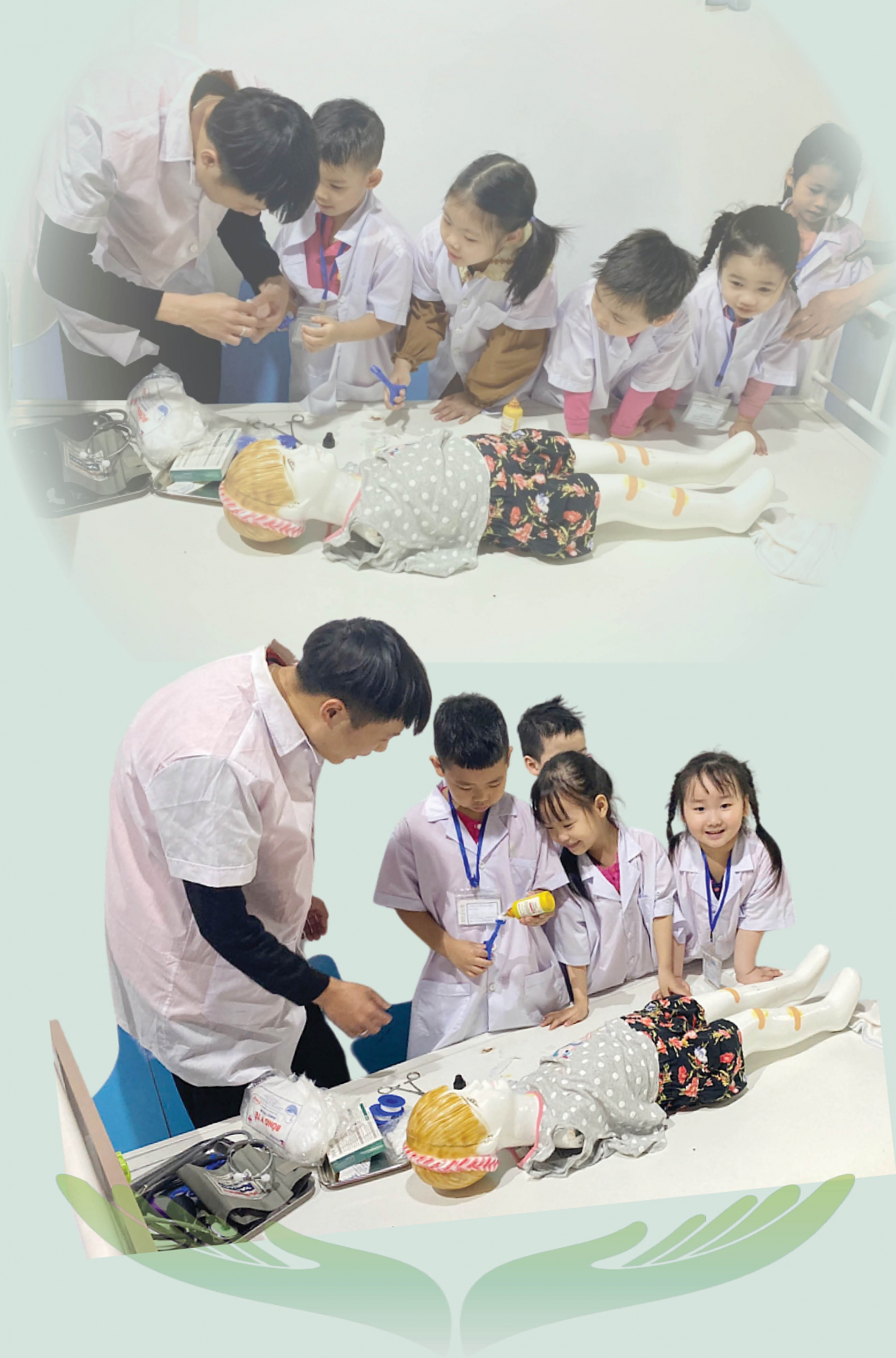 | Học sinh Trường Mầm non Phượng Hồng (thành phố Nam Định) trải nghiệm làm bác sĩ tại trung tâm thương mại Nam Định Tower. |