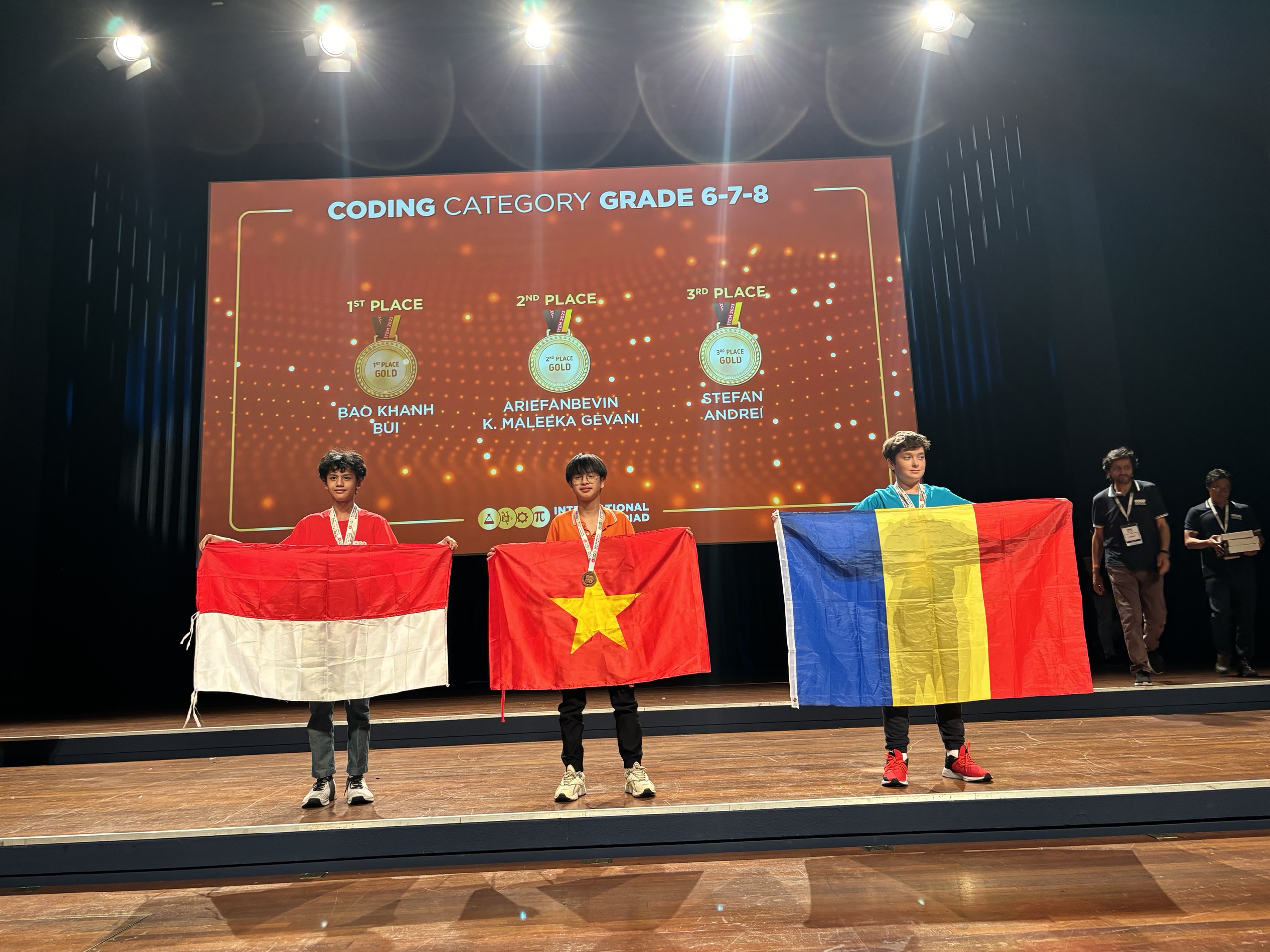 Trước đó, vòng quốc tế cuộc thi OLYMPIAD STEM Quốc tế 2024 diễn ra vào ngày 11/02/2024, Bùi Bảo Khánh đã giành Huy chương Vàng, đứng vị trí TOP 5 Thế giới, Hoàng Duy Hưng 7A1 giành Huy chương Bạc, đứng vị trí TOP 17 Thế giới tại bộ môn Tin học. Bảo Khánh và Duy Hưng đã xuất sắc vượt qua các thí sinh và ghi danh trực tiếp trong vòng Chung kết tại đấu trường Quốc tế lần này.