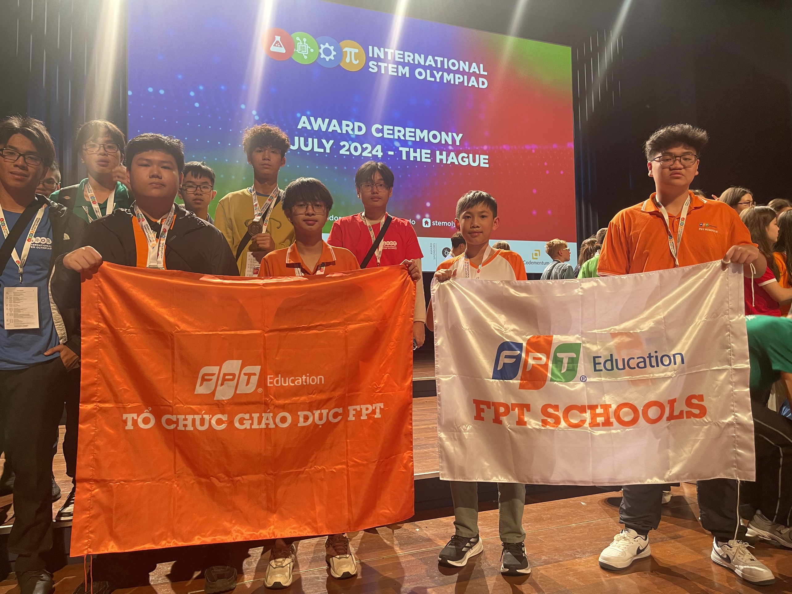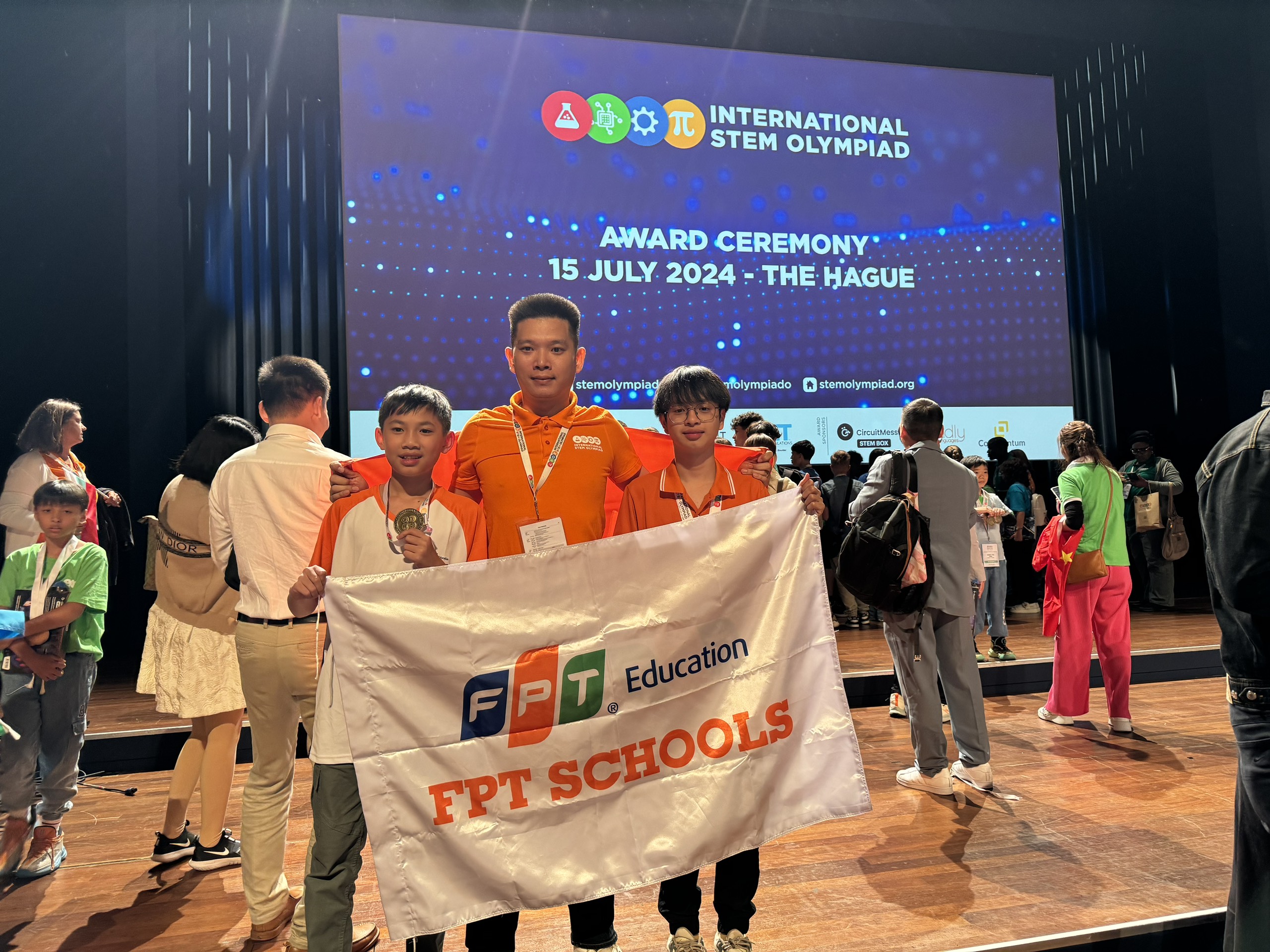 Vào ngày 14/7/2024, Bùi Bảo Khánh, lớp 7A3; Hoàng Duy Hưng, lớp 7A1 Trường Tiểu học, THCS và THPT FPT Hà Nam; Hoàng Hùng Anh, lớp 10D2 - Trường Phổ thông Liên cấp FPT Bắc Ninh; Phạm Hoàng Minh, lớp 10A2 - Trường THPT FPT Hà Nội cùng đoàn đại diện Việt Nam tham dự vòng chung kết kỳ thi OLYMPIC STEM Quốc tế 2024 tại thành phố The Hague, Hà Lan với các môn thi Tin học, Toán học, Khoa học và Điều khiển Robot.
