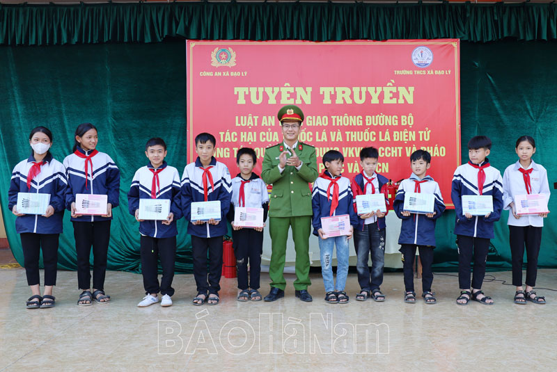 Chiều 18/1, Công an xã Đạo Lý (Lý Nhân) phối hợp với Trường THCS Đạo Lý tổ chức tuyên truyền, hướng dẫn Luật Giao thông đường bộ, tác hại của thuốc lá và thuốc lá điện tử, công tác quản lý vũ khí vật liệu nổ và công cụ hỗ trợ, pháo nổ và thực hành công tác phòng cháy, chữa cháy và cứu nạn cứu hộ (PCCC&CNCH).