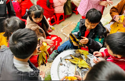 Niềm vui, háo hức của ngày hội gói bánh chưng còn được nhân lên gấp bội khi chính các con được nổi lửa luộc bánh. “Ngồi bên nhau trông bánh chưng ..., đỏ hây hây những đôi má hồng” của tết xưa được tái hiện trong sự háo hức, trông đợi của các con. Được tự tay lau từng tầu lá dong, chỉn chu trong từng công đoạn, bao tâm huyết của thày và trò trong từng chiếc bánh nhỏ xíu. Chắc chắn những chiếc bánh chưng thành quả hôm nay các con mang về có thể chưa đẹp và hoàn hảo nhất nhưng sẽ là những chiếc bánh ngon nhất, là tấm lòng thơm thảo của những người con khi dâng lên tổ tiên, ông bà, cha mẹ .