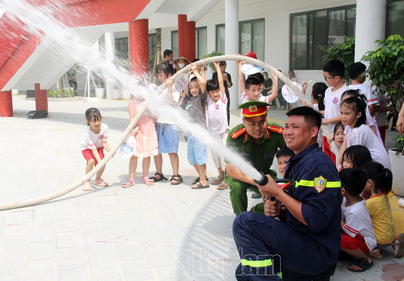 Sáng 15/6, Phòng Cảnh sát Phòng cháy, chữa cháy và cứu nạn, cứu hộ (PCCC và CNCH), Công an tỉnh Hà Nam phối hợp với Trường Tiểu học, THCS&THPT Mensa (phường Liêm Chính, thành phố Phủ Lý) tổ chức chương trình trải nghiệm, thực hành chữa cháy và CNCH cho cán bộ, giáo viên và học sinh nhà trường.