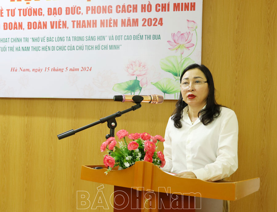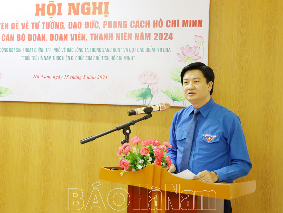 Chiều 15/5, Tỉnh đoàn tổ chức hội nghị học tập chuyên đề về tư tưởng, đạo đức, phong cách Hồ Chí Minh trong cán bộ, đoàn viên, thanh niên (ĐVTN) năm 2024; phát động đợt sinh hoạt chính trị “Nhớ về Bác lòng ta trong sáng hơn” và đợt cao điểm thi đua “Tuổi trẻ Hà Nam thực hiện Di chúc của Chủ tịch Hồ Chí Minh”.