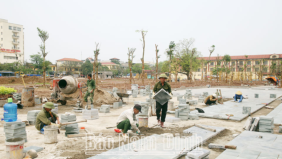 | Dự án xây dựng, cải tạo Quảng trường Hòa Bình đang được gấp rút thi công phấn đấu hoàn thành vượt tiến độ đề ra. |