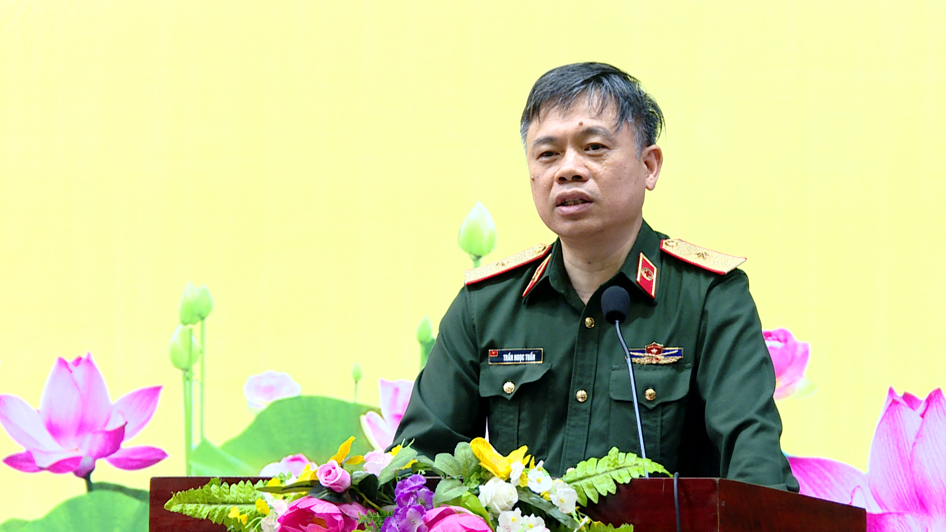 Thiếu tướng, PGS, TS Trần Ngọc Tuấn, Phó Giám đốc Học viện Quân y phát biểu tại chương trình.