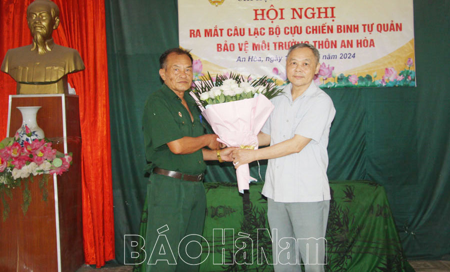 Lãnh đạo Hội Cựu chiến binh huyện Thanh Liêm tặng hoa chúc mừng CLB.