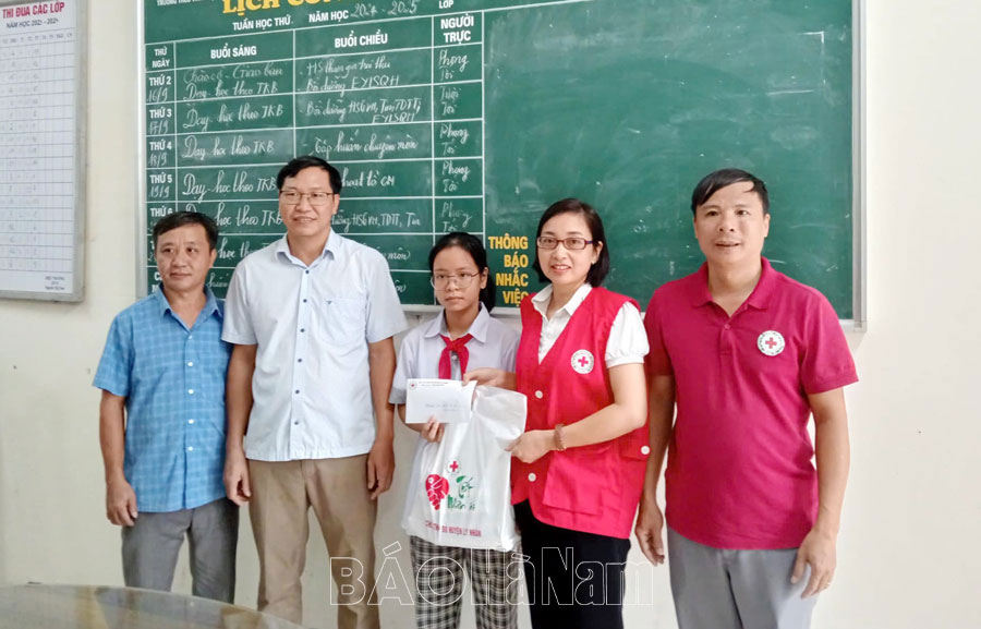 Hội Chữ thập đỏ Lý Nhân tặng quà các em thiếu nhi có hoàn cảnh khó khăn