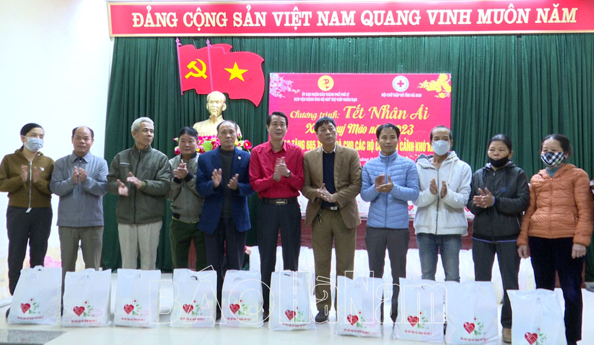 Đây là hoạt động nhân đạo được Hội Chữ thập đỏ thành phố Phủ Lý tổ chức định kỳ vào dịp Tết Nguyên đán hàng năm nhằm phát huy tinh thần tương thân tương ái, lá lành đùm lá rách. Những phần quà mang đầy ý nghĩa sẽ góp phần động viên hộ nghèo và nạn nhân chất độc da cam của thành phố Phủ Lý vơi bớt khó khăn, có thêm điều kiện đón Tết vui vẻ, đầm ấm.