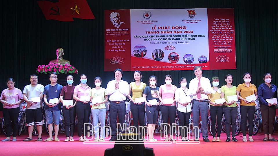 Tại lễ phát động Tháng Nhân đạo 2023, Hội CTĐ tỉnh đã trích Quỹ cứu trợ nhân đạo tặng 100 suất quà cho thanh niên công nhân, cựu thanh niên xung phong có hoàn cảnh khó khăn trên địa bàn tỉnh; tặng 20 xe đạp cho học sinh có hoàn cảnh khó khăn vượt khó học giỏi. Cũng tại lễ phát động, Ủy ban MTTQ Việt Nam thông qua Hội CTĐ tỉnh đã trao hỗ trợ xây dựng 20 căn nhà Đại đoàn kết, trị giá 50 triệu đồng/nhà cho hộ gia đình có hoàn cảnh khó khăn về nhà ở trên địa bàn tỉnh. Bệnh viện chuyên khoa mắt Alina và Công ty Rohto Mentholatum Việt Nam hỗ trợ khám, mổ mắt, cấp thuốc miễn phí cho 500 người cao tuổi; tài trợ phẫu thuật thay thủy tinh thể nhân tạo bằng phương pháp phaco miễn phí cho 50 người bị đục thủy tinh thể với tổng trị giá 240 triệu đồng.
