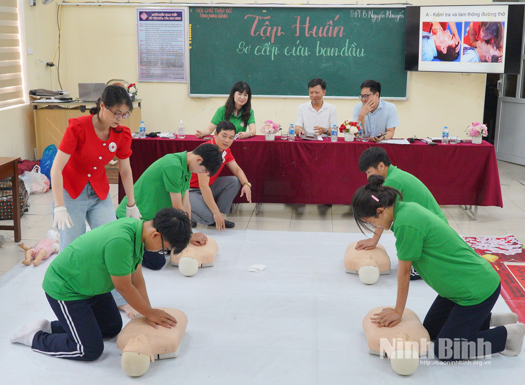 Chiều 7/4, tại Trường THPT B Nguyễn Khuyến (phường Nam Định), Hội Chữ thập đỏ tỉnh tổ chức lớp tập huấn sơ cấp cứu ban đầu cho học sinh. Dự chương trình có lãnh đạo Hội Chữ thập đỏ tỉnh, lãnh đạo nhà trường cùng 30 học sinh tham gia.