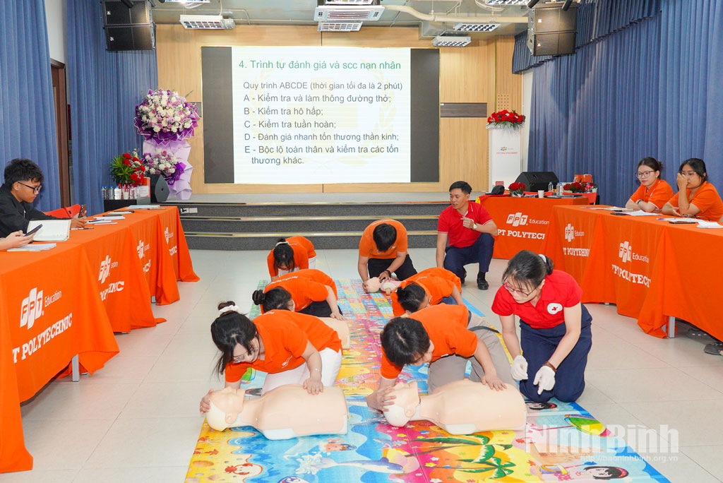 Ngày 12/4, tại Trường Cao đẳng FPT Polytechnic cơ sở Hà Nam (phường Hà Nam), Hội Chữ thập đỏ tỉnh tổ chức lớp tập huấn sơ cấp cứu ban đầu cho cán bộ, giáo viên và sinh viên nhà trường.