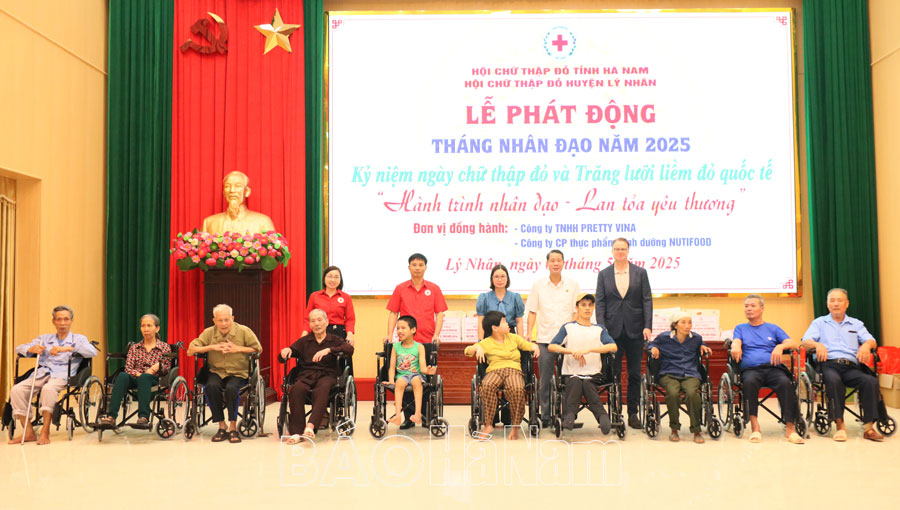 Sáng 8/5, Hội Chữ thập đỏ (CTĐ) huyện Lý Nhân tổ chức phát động Tháng Nhân đạo năm 2025 với chủ đề "Hành trình nhân đạo - Lan tỏa yêu thương”; trao tặng xe lăn và quà cho các địa chỉ nhân đạo.