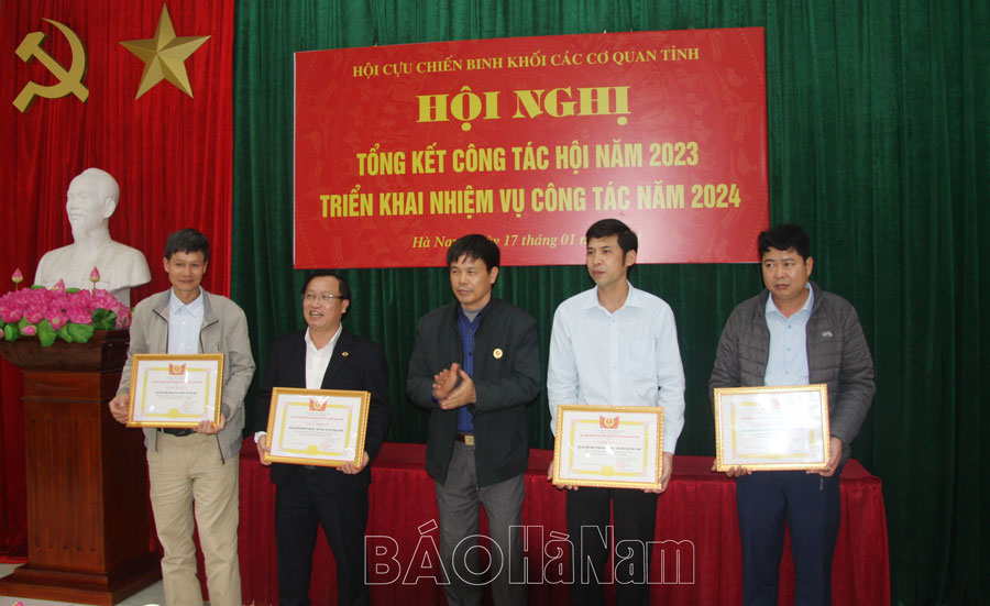 Lãnh đạo Hội CCB Khối các cơ quan tỉnh trao giấy khen cho các tập thể hoàn thành xuất sắc công tác hội năm 2023.